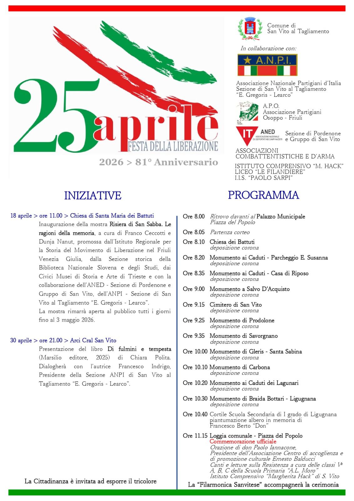 25 Aprile 2026 | 81° Anniversario della Liberazione