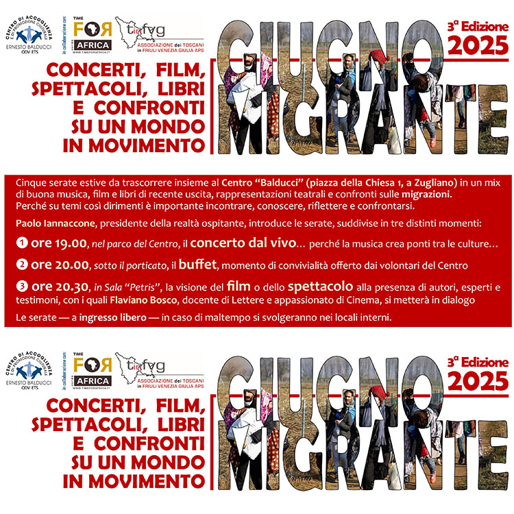 Paolo Iannaccone, presidente del Centro “Balducci”, introdurrà la serata suddivisa in tre distinti momenti che si terranno in piazza della Chiesa 1, a Zugliano (le serate, a ingresso gratuito, in caso di maltempo si svolgeranno nei locali interni del Centro “Balducci”)