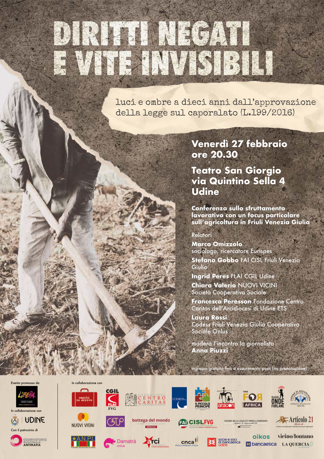 Conferenza sullo sfruttamento lavorativo con un focus particolare sull'agricoltura in Friuli Venezia Giulia