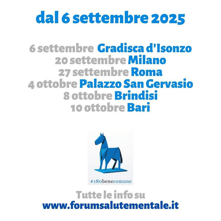 Dopo aver attraversato gli Ospedali Psichiatrici Giudiziari d’Italia per denunciare l’ingiustizia e l’inumanità di quei luoghi, oggi il suo cammino lo porta nei CPR (Centri di Permanenza per il Rimpatrio). Si tratta di un'iniziativa di grande importanza, promossa dal Forum nazionale sulla salute mentale insieme, per il FVG, al Centro Balducci, alla Rete DASI e a molte altre organizzazioni (è stato richiesto altresì il patrocinio del Comune di Gradisca) Dopo aver attraversato gli Ospedali Psichiatrici Giudiziari d’Italia per denunciare l’ingiustizia e l’inumanità di quei luoghi, oggi il suo cammino lo porta nei CPR (Centri di Permanenza per il Rimpatrio). Strutture che, per molti versi, ricordano gli OPG, ma che forse sono ancor più crudeli dal punto di vista umano. Qui ci sono uomini e donne il cui unico “errore” è stato cercare una via di fuga dalla fame, dalla guerra, da un destino segnato. I CPR sono l’emblema dell’ingiustizia sociale del nostro tempo: luoghi di detenzione senza colpe, di esclusione senza appello, di violenza istituzionale normalizzata. Per queste ragioni a settembre e ottobre di quest’anno, Marco Cavallo farà tappa a Gradisca, Milano, Roma, Palazzo S. Gervasio, Bari e Brindisi secondo il calendario sotto indicato: 6 settembre a Gradisca D'Isonzo 20 settembre a Milano 27 settembre a Roma 4 ottobre al Palazzo San Gervasio 8 ottobre a Brindisi 10 ottobre a Bari Ogni tappa sarà un’occasione per portare alla luce la realtà dei CPR, per raccontare storie dimenticate, per denunciare l’assenza di diritti e la disumanizzazione di chi vi è rinchiuso. Sarà un viaggio di denuncia, ma anche di speranza e partecipazione. Informazioni logistiche più dettagliate verranno inviate al più presto ma fin d'ora chiedo a tutti/e di segnare la data del mattino di sabato 6 settembre 2025 per partecipare alla manifestazione-corteo insieme a Marco Cavallo e di fare la massima promozione possibile. Il mercoledì 30 luglio 2025 dalle ore 19.00 e soprattutto alle 21.00, ci sarà al Teatro comunale di Gradisca un importante evento con la partecipazione di Massimo Cirri, che di fatto sarà il lancio del viaggio di Marco Cavallo. Qui il link
